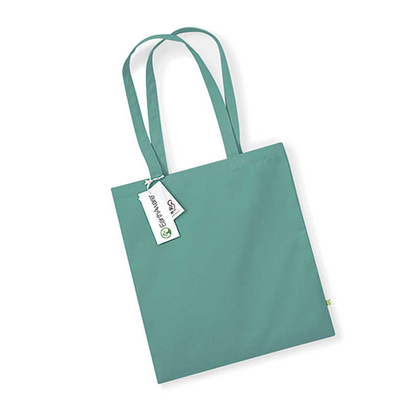 Vysoce kvalitní plátěná nákupní taška o rozměru 38x42 cm se dvěma uchy délky 67 cm. Organickou bavlněnou tašku značky EarthAware™ si zamilují nejen milovníci udržitelné módy a doplňků, ale každý kdo rád nakupuje do kvalitní plátěnky s vlastním designem. Nevyhazuj po každém nákupu nevzhledné igelitky, pořiď si vlastní originální tašku a šetři životní prostředí.